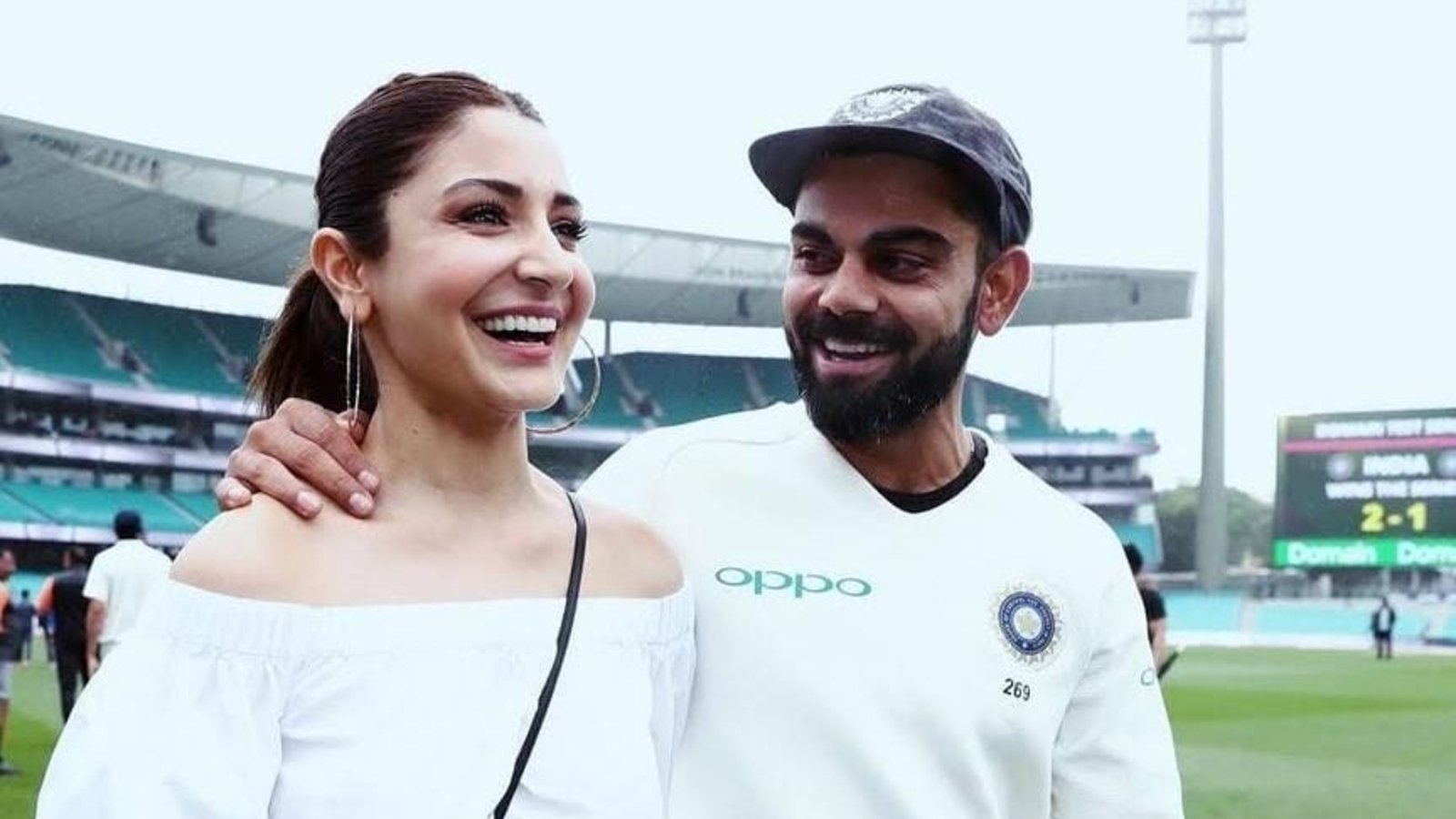 Taking to her Instagram account on Monday, Anushka shared a picture with Virat where the two of them were seen smiling as they walked on the test pitch together.